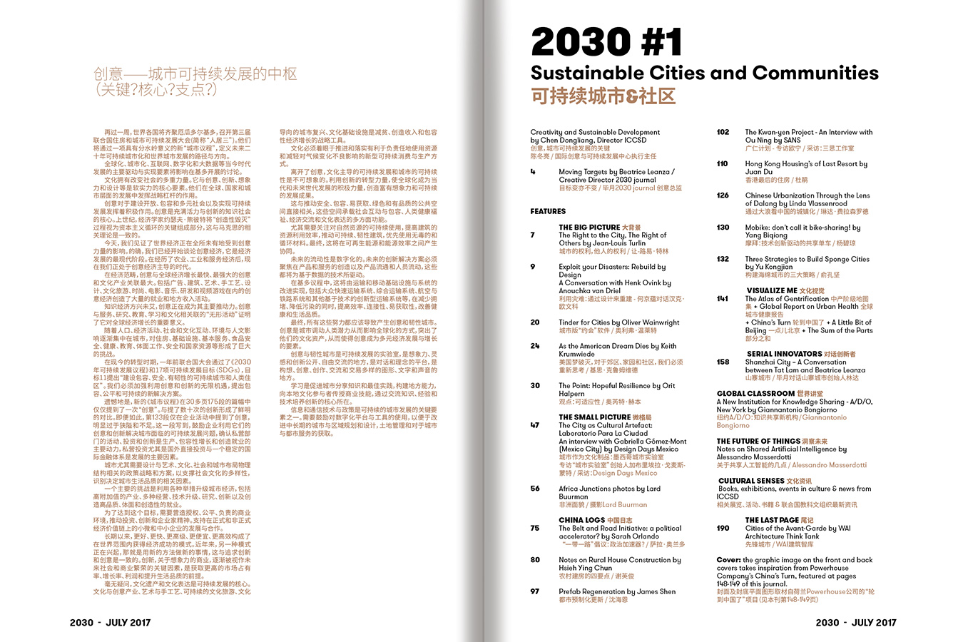 Creation of the first issue of 2030 magazine for sustainaible cities and communities, printed in China.