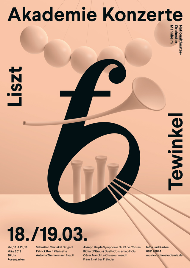 Key visuals, posters and booklets in print and digital for the National Theater Orchester in Mannheim, Germany.