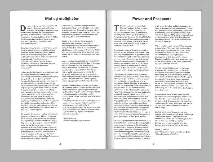 Catalogue for the final degree show for Kunsthøgskolen i Oslo (KHiO). The cover comes with a sanding paper feel.