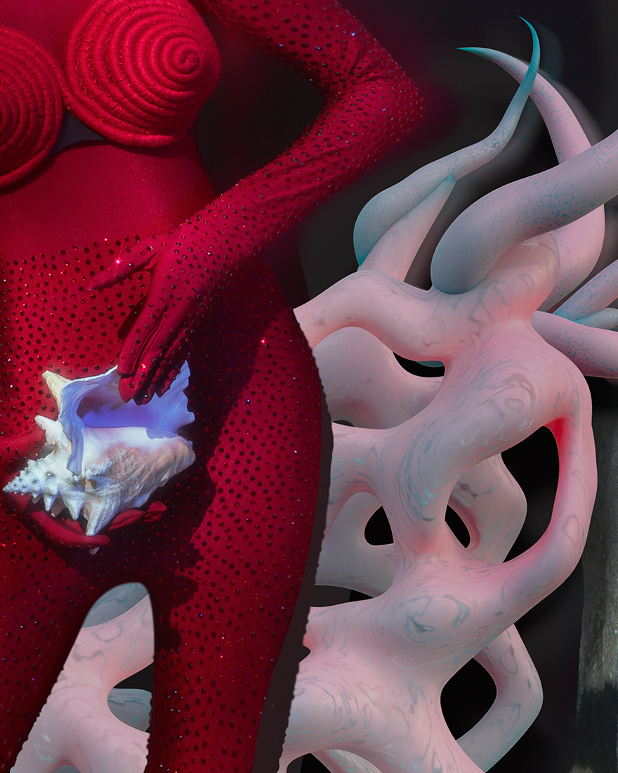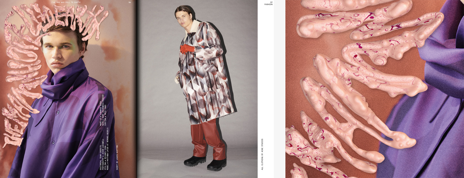 3D work for the Paris based fashion photographer Valentin Fabre. "Cosmic Garden" is a fashion shoot exploring a place 'halfway between Earth and space'. Alien bodies and fluids were built in CGI, spicing up the journey. In collaboration with Valetin Fabre, Paris, France.