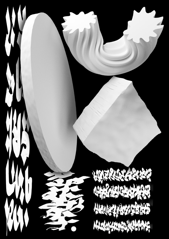 3d objects and layout support for the Alien issue of FuckingYoung! A futuristic, alien like touch was added by creating 3d headlines.
